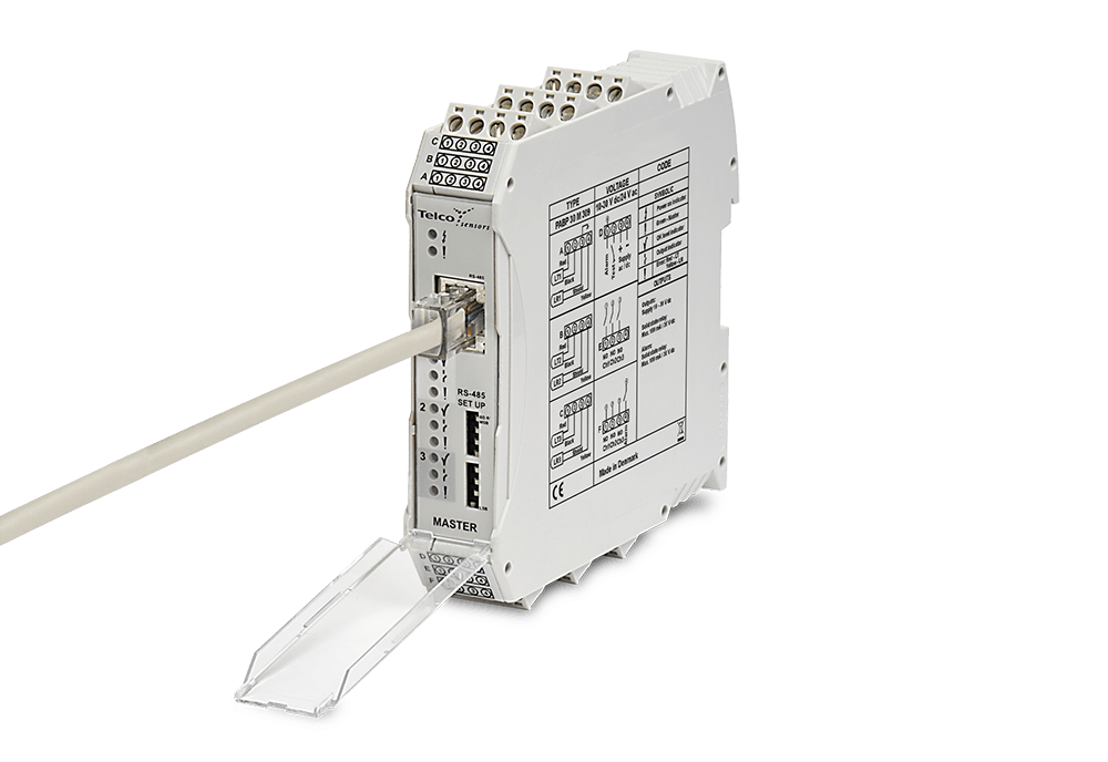 The PABP amplifier series is fully programmable with the use of Telco’s PC software via an RS-485 communication interface. The graphical user interface of the software allows a wide range of parameters and settings to be remotely programmed and monitored for each individual channel of the Master amplifier and its Slave amplifier modules connected in bus connection, via bus rail connector positioned on the DIN rail. The PABP 30 M master amplifier includes an RJ45 socket for the RS-485 interface. Up to 10 slave amplifiers from the PABP series can be connected to the master amplifier to form a complete modular system with up to a total of 33 channels.